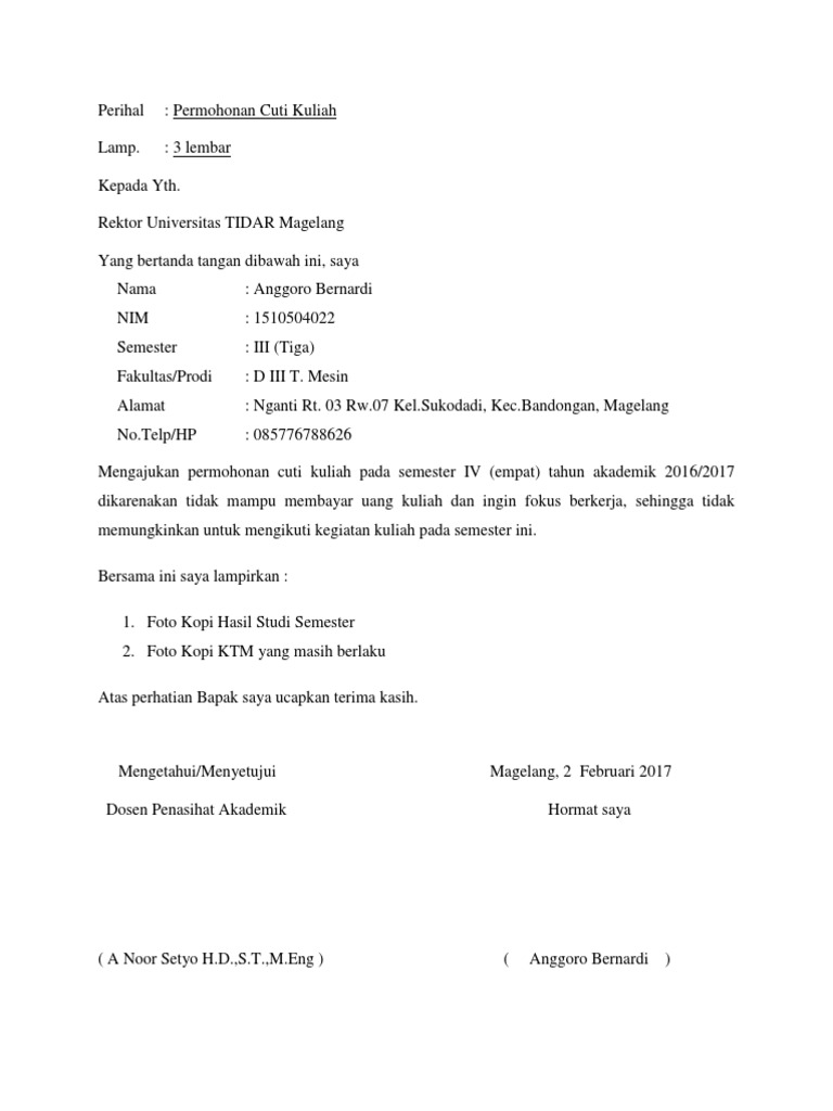 3 tahun 1990 permohonan cuti rehat kepada : Contoh surat cuti kerja tanpa gaji sebab kecemasan sakit atau alasan peribadi. Ftsm di bawah program multimedia kebergunaan. • cuti gantian • cuti latihan pasukan sukarela • cuti isteri bersalin. Anton jalan abc, rt 3 nomor 8 0123456789. Demikian surat permohonan cuti ini saya ajukan.