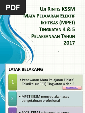 Surat pekeliling ikhtisas bilangan 5 tahun 2019: 26 oktober 2017 pengetua, sm kerajaan / bantuan kerajaan, negeri kedah darul aman. Cg narzuki | july 22, 2016 at 2:23 pm. Bil mata pelajaran elektif teknikal (mpet) kbsm kod mata pelajaran mata pelajaran elektif ikhtisas (mpei) kssm kod mata pelajaran 1. Enam mata pelajaran di bawah unit kejuruteraan dan teknologi asas (ukta) terlibat dalam penjenamaan semula mpei iaitu: Tuan, taklimat penyelarasan kerja kursus mata pelajaran elektif ikhtisas (mpei) sijil pelajaran malaysia (spm) mata pelajaran :