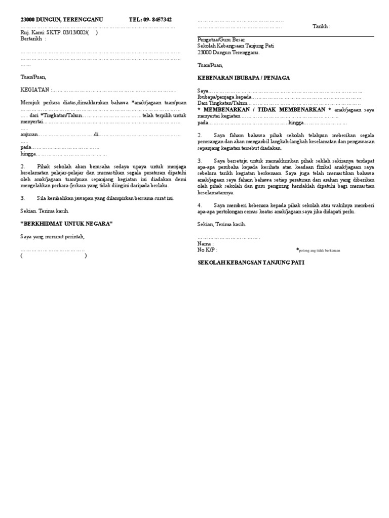 Contoh Surat Kebenaran Menjalani Latihan Rocks Di Sekolah