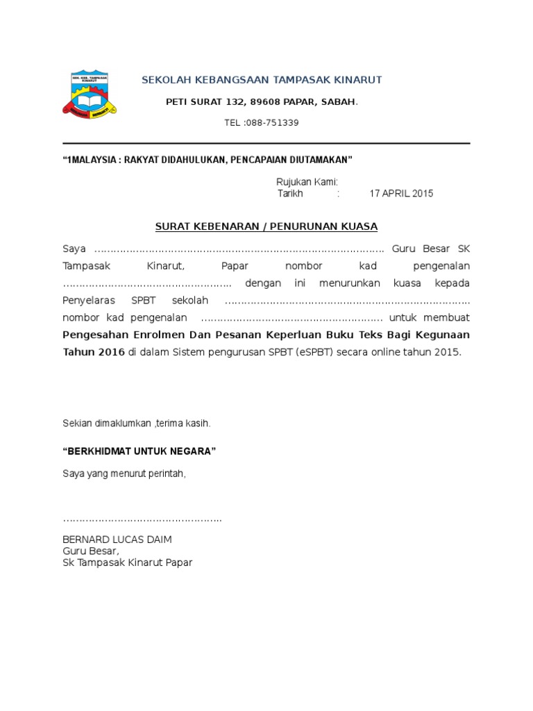 Contoh Surat Turun Kuasa. Anda mungkin perlu mempelajari teknik yang berbeza untuk menulis surat dalam ini era digital di mana mesej teks dan e-mel telah menggantikan surat perniagaan rasmi. Kandungan surat akan menentukan penekanan apa diletakkan di perenggan utama.
